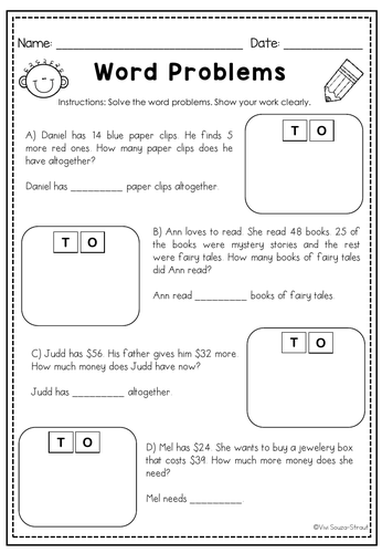 Subtraction Word Problems 2Nd Grade. There are two versions of each sheet. Home > quizzes > math quizzes > word problems :