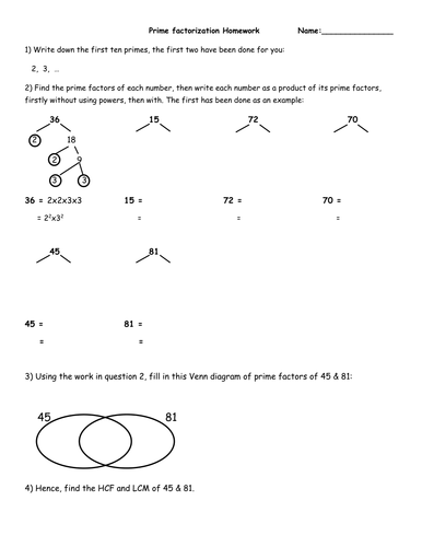 Worksheet Prime Factorization. Create an unlimited supply of free worksheets for prime factorization or for finding all the factors of each worksheet is randomly generated and thus unique. Find the prime factors by factor method.